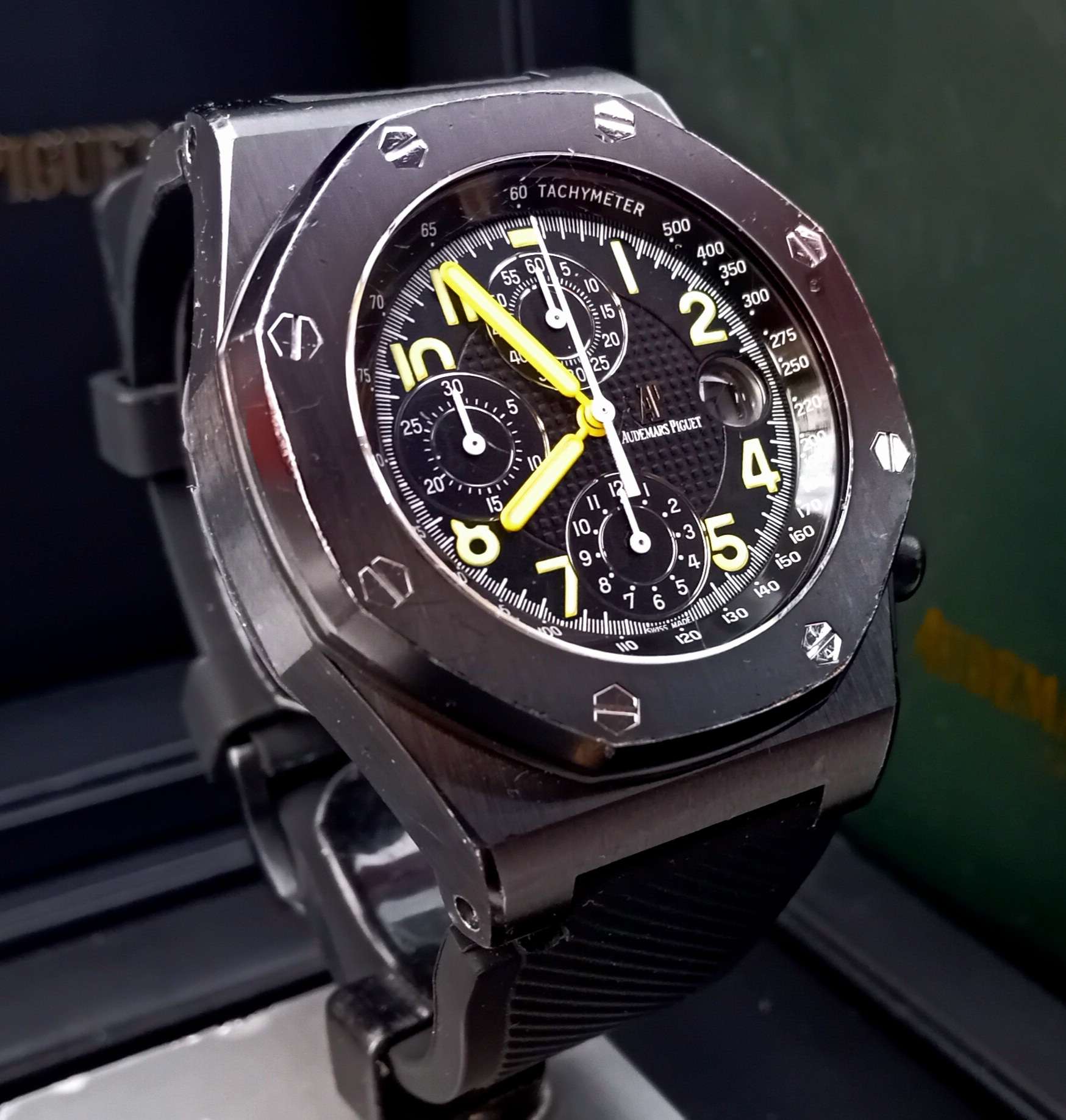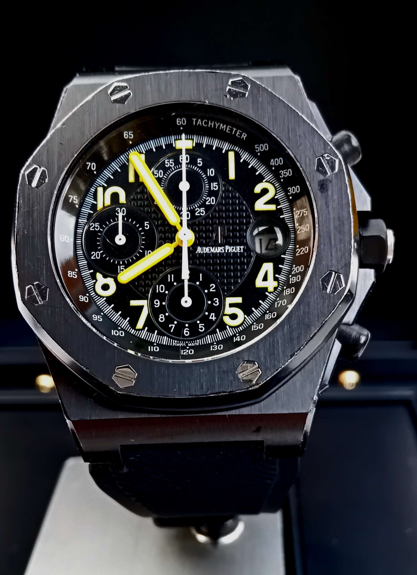 Audemars piguet royal oak offshore end of days 500 darabos limitált éjfekete tokos,sárga mutatós és számos 42mm-es csoda dobozában,könyveivel,szervizgarancia kártyájával,Chrono24-es eredet igazolási certifikációval 1 kaucsuk+3db bőrszíjjal szuper áron eladó,cserélhető.A gyártó az egyik legnagyobb név az óragyártásban a 2226/2840-es caliber egy iparművészeti remekmű.A kézi finomítás mely magába foglalja az anglírozott és polírozott fémrészek,gyöngyözött platina,genfi csíkozású hidak,gyémánttal csiszolt csavarfej süllyesztések munkafolyamatokat több munkaórát vesznek igénybe,mint az alkatrészek legyártása.Maga a modell egy gyűjteményi csoda;Arnold Schwarzenegger az AP-val való első együtt működésének gyümölcse,mely az itthon Ítélet nap című filmben volt látható,valamint egyben minden offshore modellek legelső limitált szériás kiadása,egy csuklón hordható ikon.Ref.száma:25770SN.O.0001KE.01.Befektetésnek is kiváló,ára hosszú távon csak emelkedni fog .Kérem tekintse meg további óráimat!