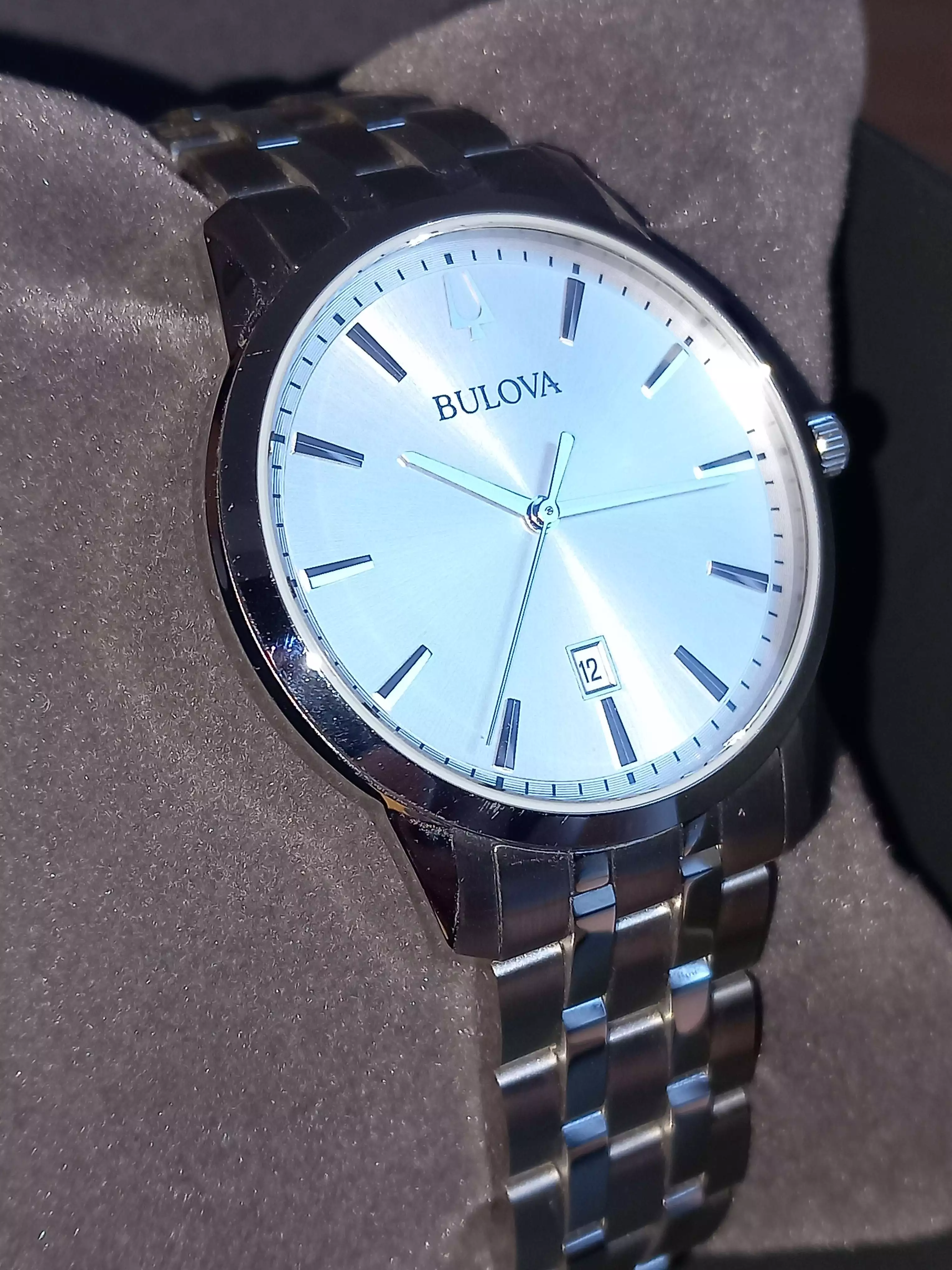 Újonnan vásárolt, alig használt, még garanciás Bulova Sutton Classic kvarc karóra. Klasszikus, elegáns számlappal. Acél tok és szíj, teljesen karcmentes. Az óra szépen müködik. Eredeti dobozában, garanciajeggyel együtt.