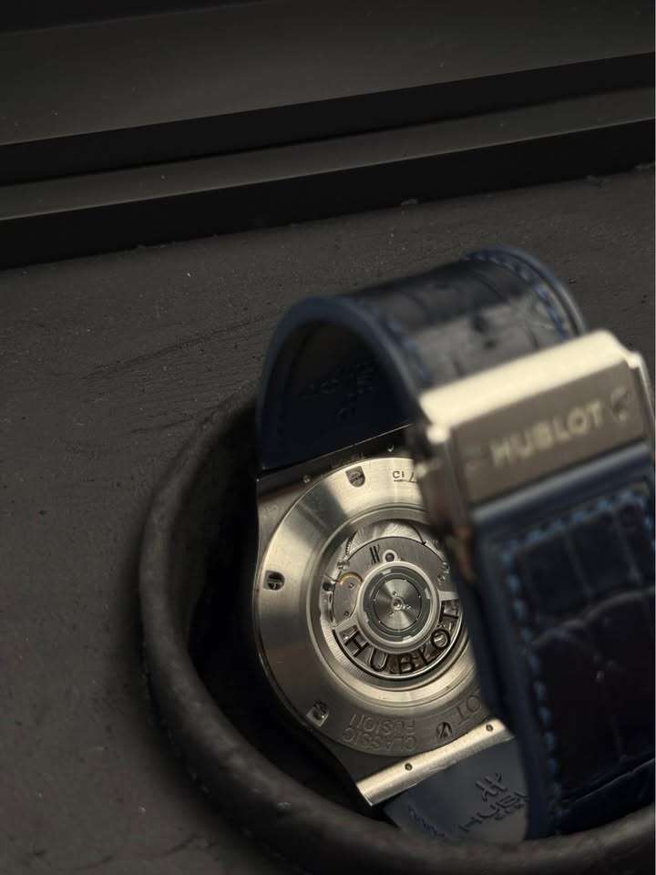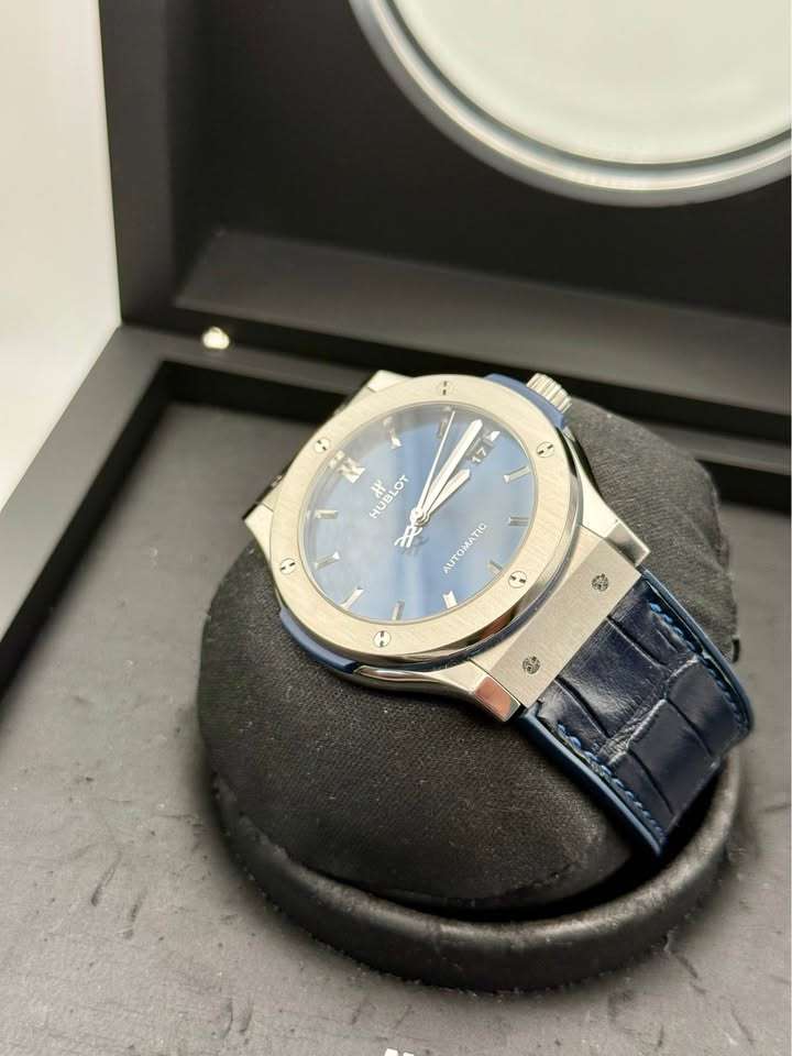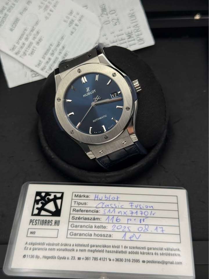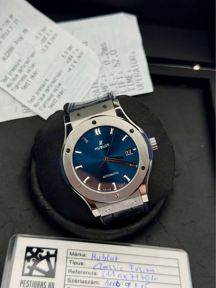 Eladó egy rendkívül elegáns és keresett Hublot Classic Fusion, 45mm-es méretben, gyönyörű mély sötétkék számlappal – élőben még brutálisabb, mint képen.