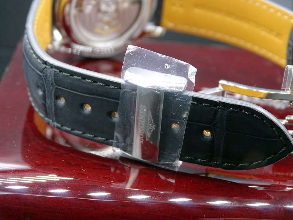 Az óra 38.5mm-es, elöl-hátul zafírral. Különleges lazac számlap kismásodperc mutatóval.
