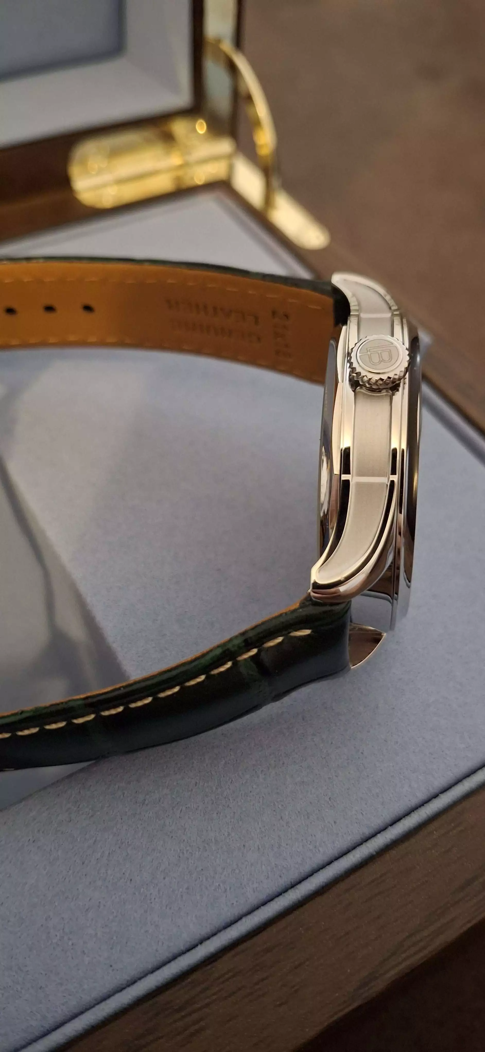 Egyedi, kézzel készített svájci óra, egy kis svájci manufaktúrától. Rendkívül elegáns, minőségi óra. A gyártó ezt a tipust már nem készíti ezért csak néhány példánya érhető el. Ezek kis szériában gyártott egyedi példányok, ami azt is jelenti, hogy ebben az országban csak ez az egy darab van belőle.