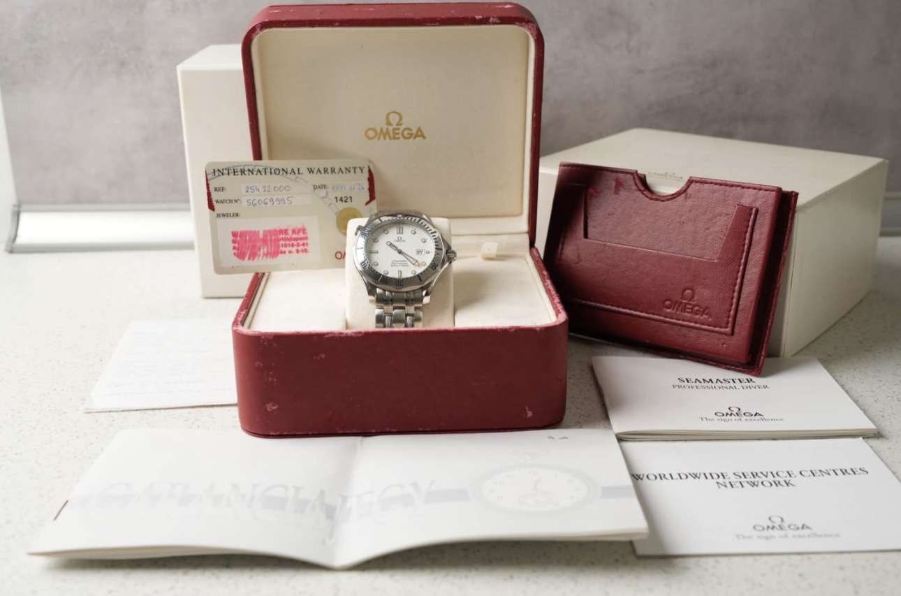 Ritkán fellelhető fehér színű Seamaster Diver 300 quartz szerkezettel. Az óra magyarországi vásárlású, teljes szettben, szép állapotban.