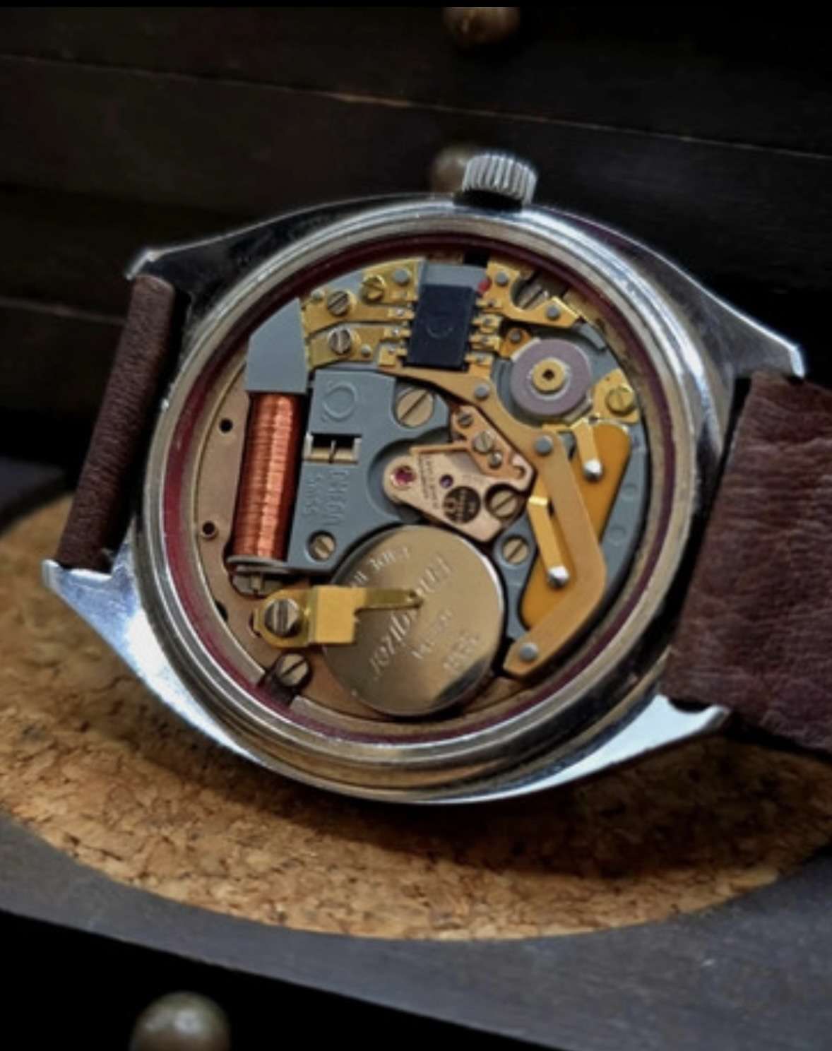 A benne található Omega Calibre 1310 szerkezet szépen és pontosan működik, megbízható kvarc mechanika, amely a maga idejében kifejezetten fejlett technológiának számított.