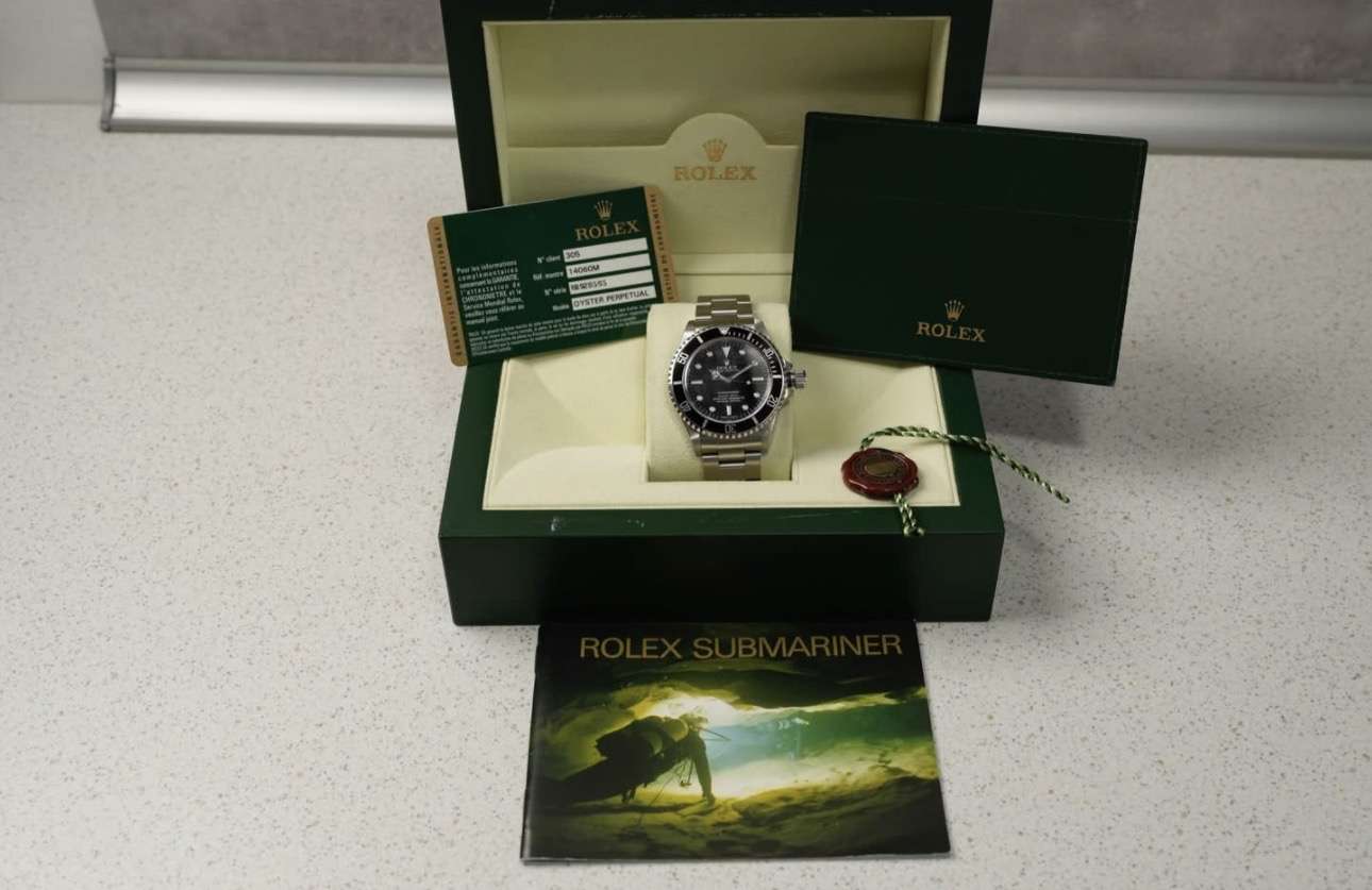 Gyöbyörű állapotú 14060M a no-date búváróra, amit 1999 és 2010 között gyártottak, alumínium lünettával, lukas tokfülekkel és modernizált Cal. 3130 szerkezettel. Ez a modell a klasszikus Submariner vonal utolsó mohikánja, ami még megőrizte a vintage vonásokat, miközben sapphire kristályt és 904L acélt kapott, valamit már tömör végszemeket, így nem "csörög"