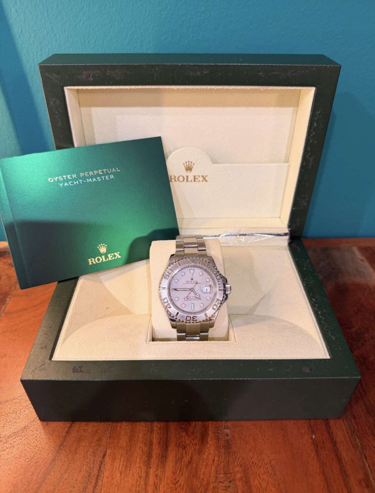 Eladó egy gyönyörű, 1999-es Rolex Yacht-Master 16622, Rolesium kivitelben. Az óra klasszikus, mégis elegáns és sportos megjelenésű, acél tokkal, platina lünettával és platina számlappal, ami különlegesebbé teszi ezt a modellt.